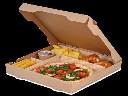 Mit umweltfreundlichen Catering-Kartons und dazu passenden Servierplatten wird Ihre Box to-go besonders sicher transportiert und dank Sichtfenster aus PET auch gleichzeitig zum optischen Highlight.