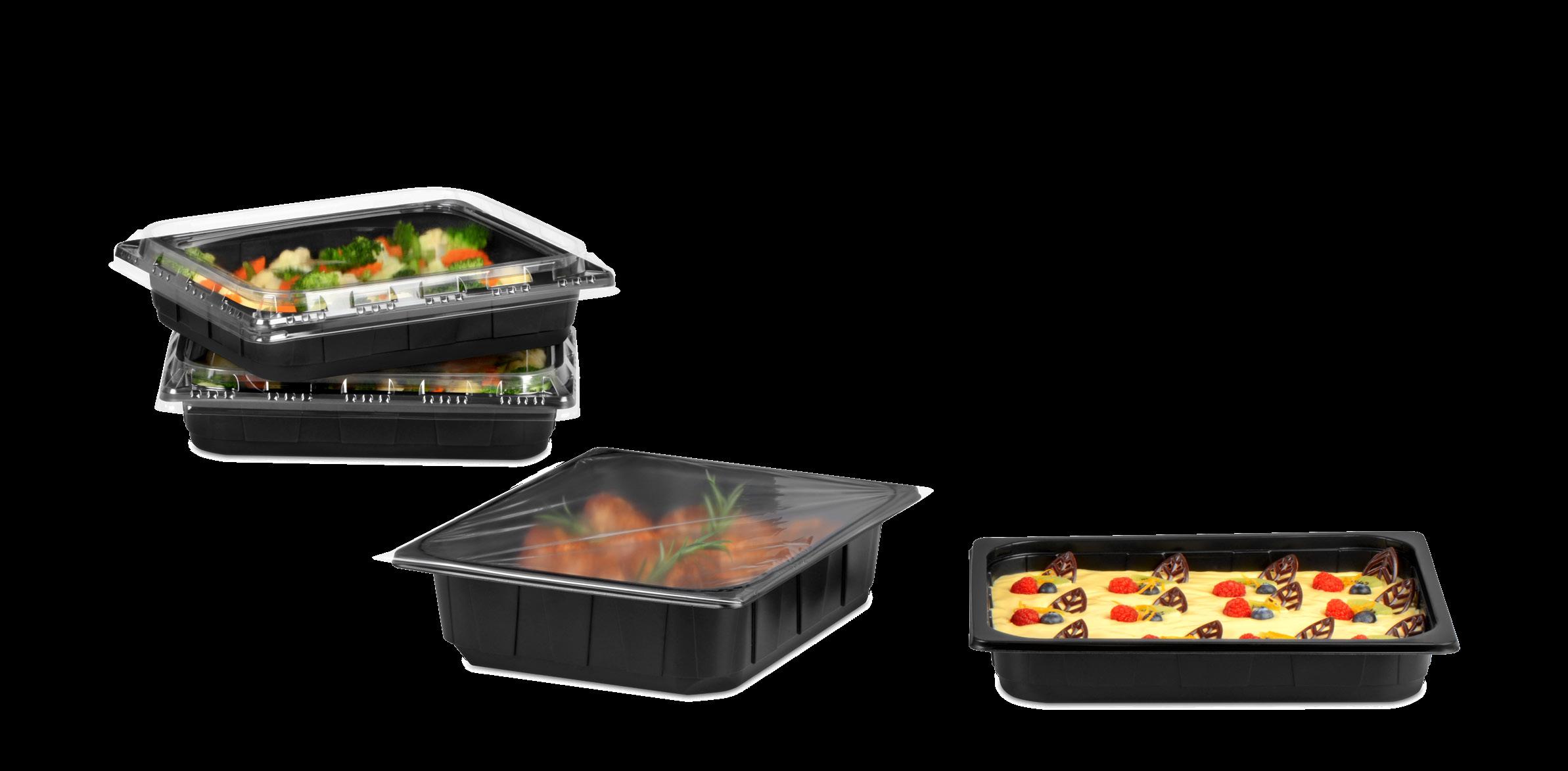 ■ im Gegensatz zu Aluplatten dürfen Servierplatten aus rPET auch mit salzigen oder säurehaltigen Lebensmitteln belegt werden