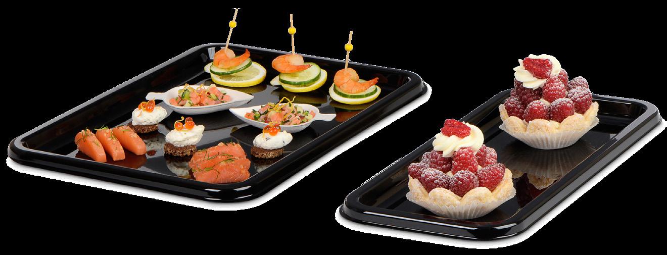 b als edle Unterlage auf einem Buffet, zum Servieren bei Stehempfängen oder als praktische Auslage in Ihrer Theke –diese schwarzen Kunststoffplatten in klassischer, rechteckiger Form lassen Ihre Speisen besonders appetitlich wirken.