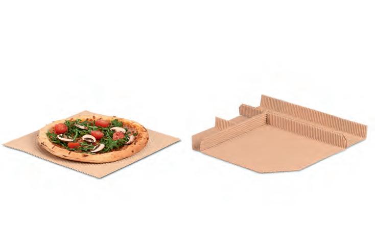aus Wellpappe (B-Welle)sehr stabil & stapelbarideal auch für Pinsa, Fladenbrot oder flache Feinkost-Häppchen