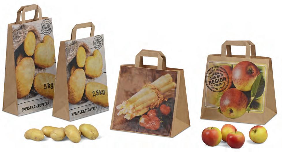Produkte aus der heimischen Landwirtschaft sind voll im Trend. Mit diesen Tragetaschen, bedruckt mit attraktiven Motiven für Kartoffeln, Äpfel und Spargel, präsentieren Sie diese besonders verkaufsfördernd.