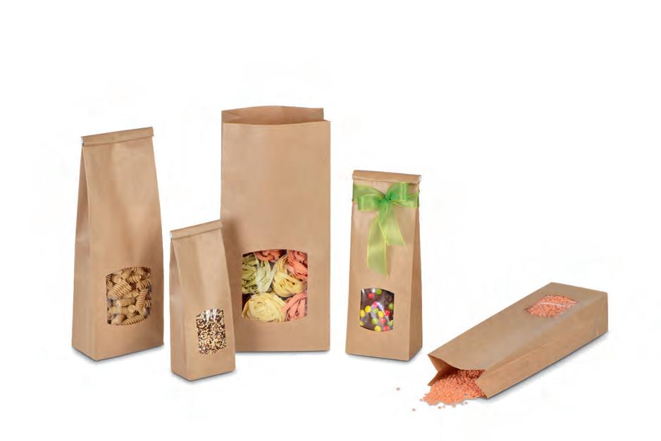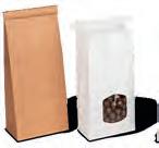 niversell einsetzbarer Kraftpapierbeutel mit standfestem Blockboden. Das PET-Fenster gibt den Blick auf den Inhalt frei, die PE-beschichtete Innenseite bietet noch mehr Schutz beim Verpacken von leicht fettenden Lebensmitteln. Auch für gemahlene Inhalte geeignet.
