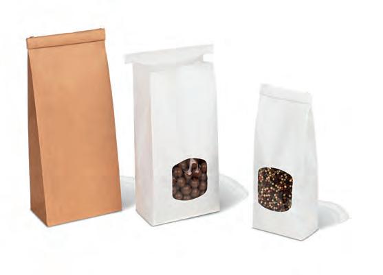 ■ aus OPP-Folie, außen papierkaschiert – auch für fein gemahlene und aromasensible Inhalte geeignet