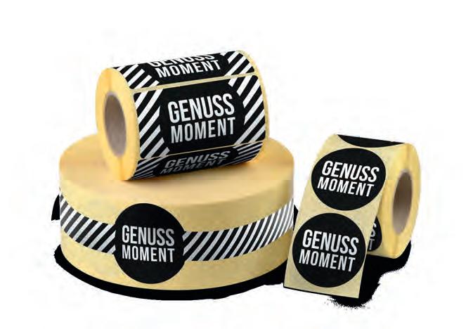 TIPP: Motiv-Etiketten auf der Rolle als Erstöffnungsgarantie oder als Qualitäts merkmal finden Sie ab S. 60 und unter rausch-packaging.de