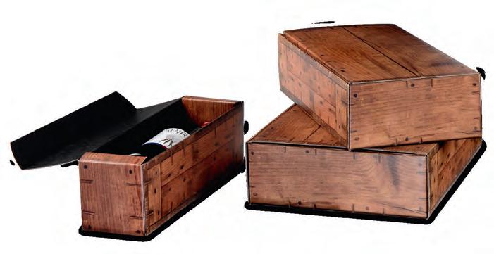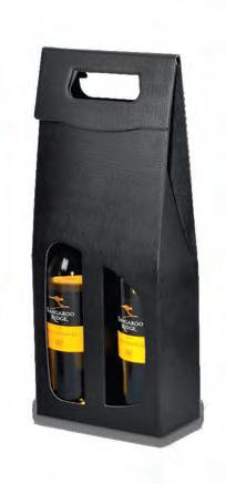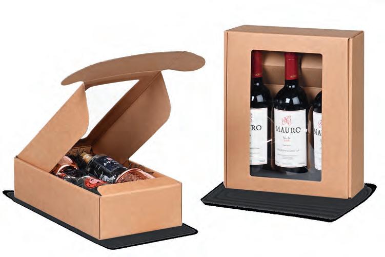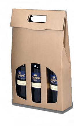 grosse Sichtfenster – zur perfekten Präsentation der Flaschenetiketten attraktive Lederoptik – 4 Farben zur Wahl praktischer Tragegriff spart Lagerplatz – wird flach angeliefert schnell und einfach aufgerichtet, rasch befüllt aus Wellkarton, recyclingfähig