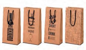 Stilsicheres Verpacken von Flaschen als Geschenk zu Geburtstagen, Jubiläen und anderen Anlässen. Die braunen Tragetaschen aus Kraftpapier mit attraktivem Druck und schwarzen Stoffkordeln sind perfekte Flaschen-Geschenktaschen. Die Taschen sind aus Papier gefertigt und fürs Transportieren von Wein, Sekt und anderen edlen Tropfen geeignet. sehr reissfeste Tragetasche aus Kraftpapier – für 1 oder 2 Flaschen stabile und weiche schwarze Tragekordel aus Baumwolle moderner und ansprechender Motivdruck – 4 verschiedene Designs gemischt pro Grösse recyclingfähig