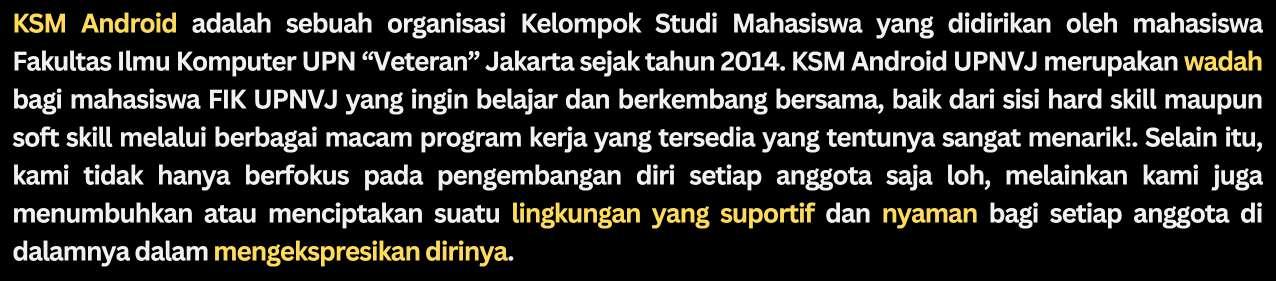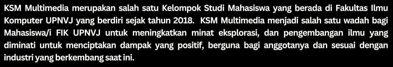 KSM Cyber Security adalah sebuah organisasi bagi mahasiswa Fakultas Ilmu Komputer UPN “Veteran” Jakarta yang tertarik pada kemanan siber yang berdiri sejak tahun 2019. KSM Cyber Security memiliki tujuanuntukmerangkul,mewadahi,danmengembangkanminatmahasiswamelaluiedukasidanpelatihan keamanan siber, serta mempererat kekeluargaan antar anggota untuk menciptakan kekeluargaan antar anggotauntukmenciptakanlingkunganyangsupportifdankolaboratif