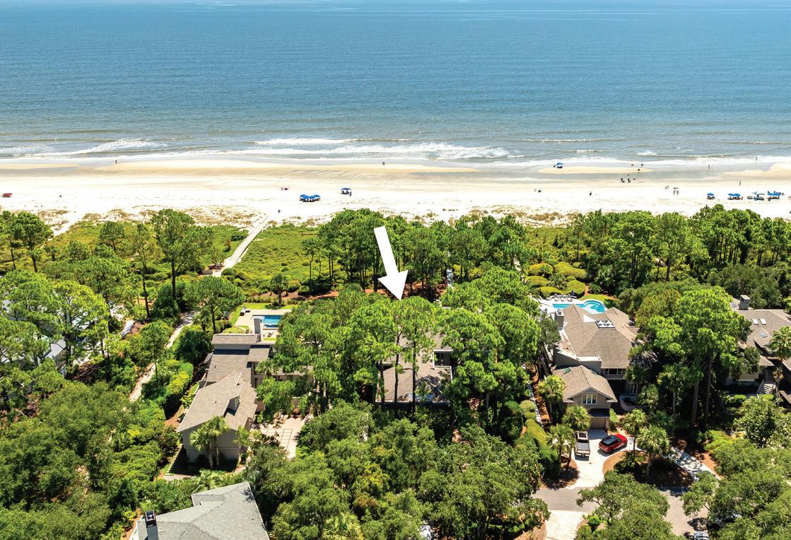 SEA PINES OCEANFRONT HOME Breathtaking beach views from this classic Sea Pines 5 bed/7 bath oceanfront home. Built by high-end builder Johnson-Delaney and designed by renowned architect Peter Brower, this superior quality home has been meticulously maintained and never rented. 2nd floor great room has cathedral ceilings, allowing for beautiful natural light. Large gourmet kitchen with Viking stove. 2 fireplaces and a screened porch. Spacious primary suite with adjacent office. Elevator stops on 3 levels. 2-car garage. 2nd primary suite on middle floor. Privacy is assured with landscaping surrounding pool/spa and secluded walkway to the beach. See it before it’s too late. MLS #447051 $7,950,000 CALL MARK OR TOM 35 RUDDY TURNSTONE