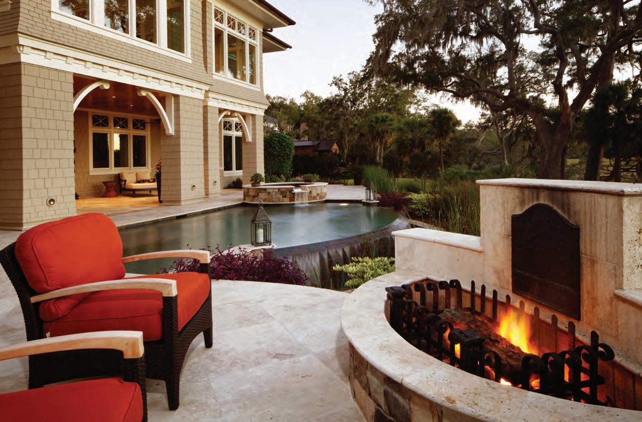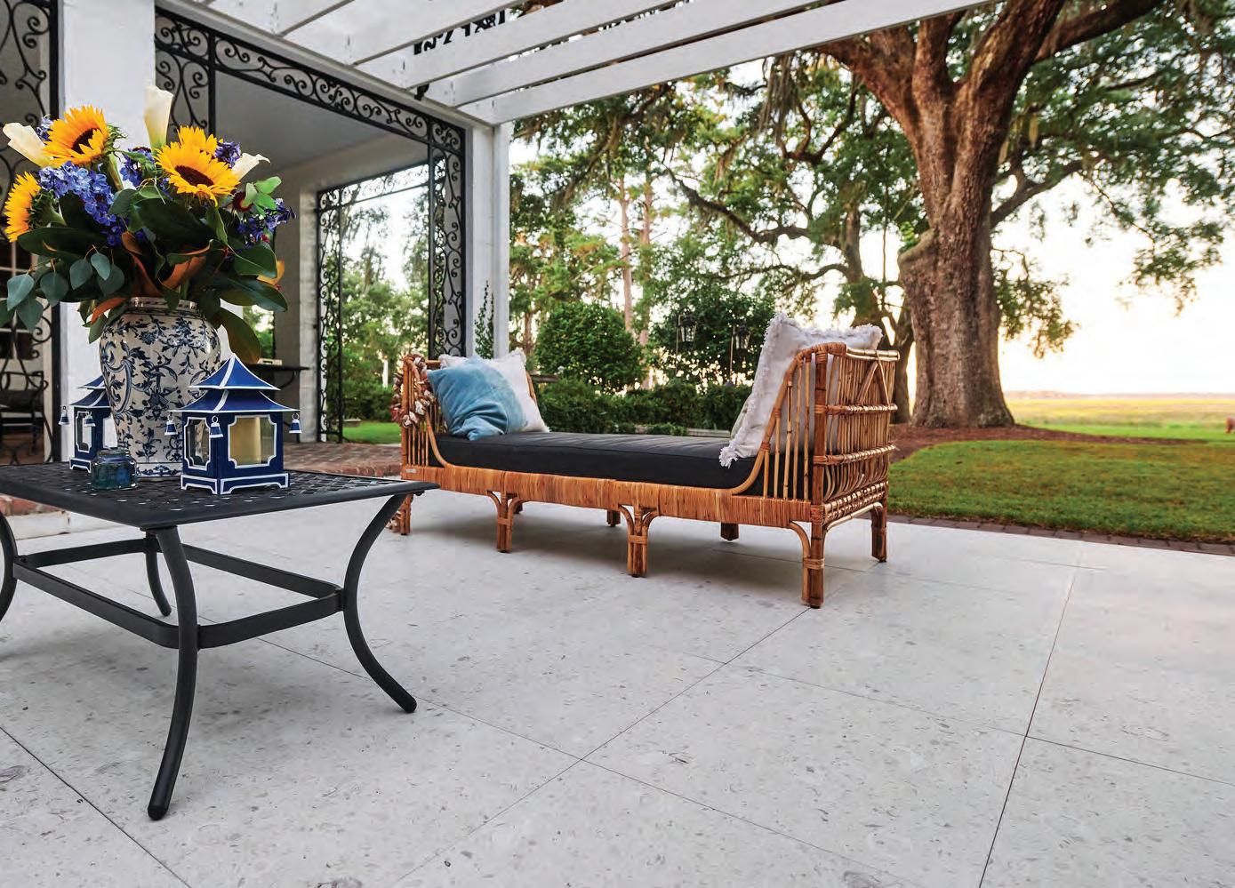 designs mimic the look of natural elements found throughout the Lowcountry. The ever popular Oyster White porcelain paver is inspired by tabby concrete, a traditional building material in Southern coastal homes. The Coral White is a new addition to the collection; a modern interpretation of authentic Florida Keystone Coral, quarried in South Florida for centuries.