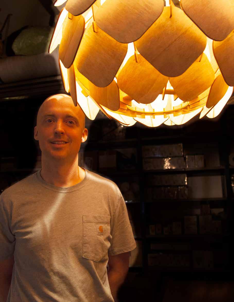 Temat för detta nummer är dock ljus, och därför har jag träffat Andreas Wenander som med sitt egenstartade företag Customwood tillverkar lampskärmar i trä. Han gör lite som humlan, flyger fast inte mycket talar för att det skulle gå. Kan vara värt att tänka på när det enligt samma undersökning om grannrelationer finns en stor andel som inte är intresserade av närmare kontakter med sina grannar. Kanske handlar det bara om att ge sig den på att få det att fungera.