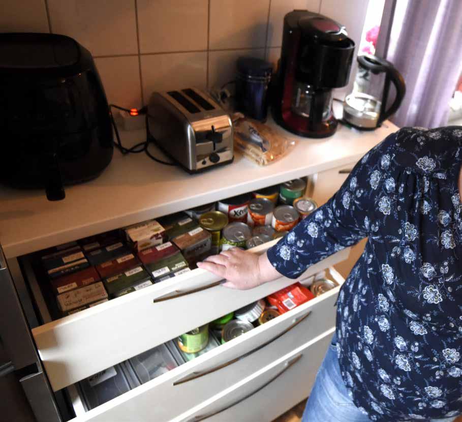 Mat är så klart också viktigt. Anette har själv mat för tre månader hemma,