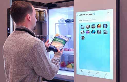 märks särskilt den uppdaterade Bespoke AI Refrigerator Family Hub. Genom ett samarbete med Google Gemini använder kylskåpet ”AI Vision” för att identifiera matvaror. Detta innebär att skåpet själv håller koll på lagret och kan föreslå recept, vilket minskar behovet av manuell inmatning.