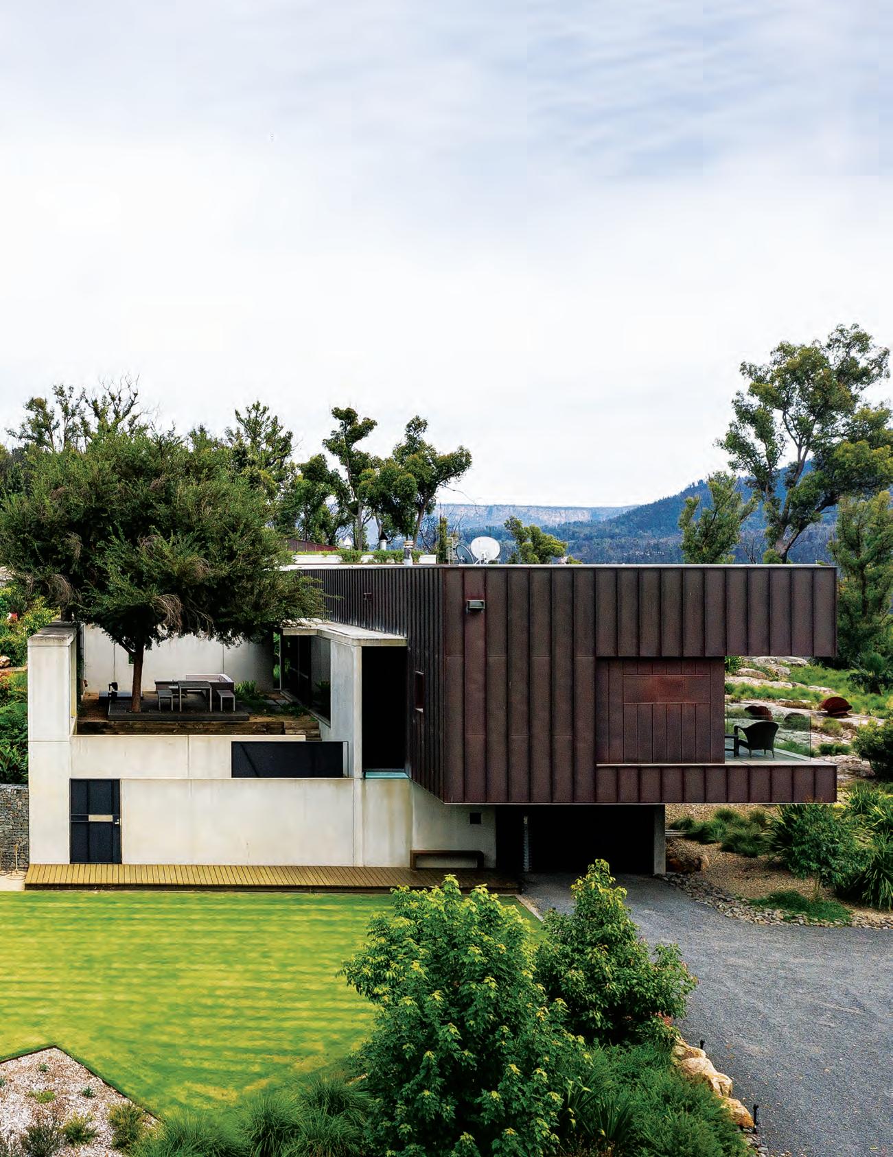 “The original house is clad in copper, like a giant shipping container, while the new wing is more firmly anchored to the site,” says Turner, pointing out the western wall that acted as a buffer for the fire.