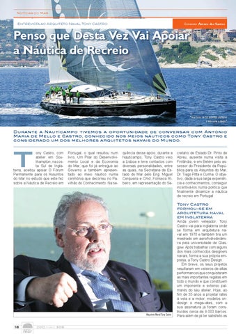 Durante a Nauticampo tivemos a oportunidade de conversar com António Maria de Mello e Castro, conhecido nos meios náuticos como Tony Castro e considerado um dos melhores arquitetos navais do Mundo.