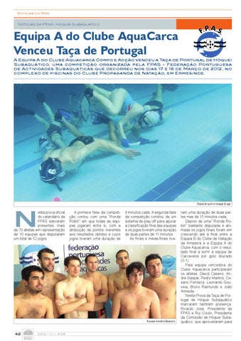 Equipa A do Clube AquaCarca Venceu Taça de Portugal A Equipa A do Clube Aquacarca Corpo e Acção venceu a Taça de Portugal de Hóquei Subaquático, uma competição organizada pela FPAS - Federação Portuguesa de Actividades Subaquáticas que decorreu nos dias 17 e 18 de Março de 2012, no complexo de piscinas do Clube Propaganda de Natação, em Ermesinde.
