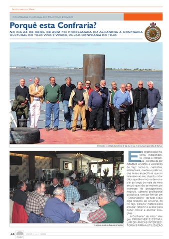 sta organização fraterna, independente, coesa e consensual, constituída por cidadãos eruditos e veteranos do Tejo: técnicos, cientistas, intelectuais, nautas e práticos, das áreas específicas que interessam ao seu objecto, cidadãos que têm vindo a demonstrar ao longo de mais de meio século que não se movem por interesse de protagonismo, negócio, carreira profissional ou política, tem por fim ser um “ Observatório ” de tudo o que diga respeito ao universo do rio Tejo, para ter matéria para estudar, reflectir e avaliar para poder criticar e apontar soluções. A Confraria “ ab initio ” elegeu PROMOVER E ESTIMULAR DINÂMICAS INTERSECTORIAIS PARA A UTILIZAÇÃO
