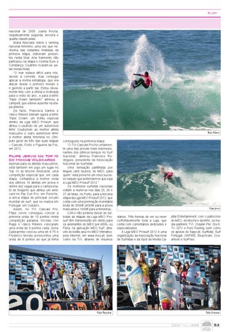 diários. Três formas de ver ou rever confortavelmente toda a Liga, que conta com comentários dedicados e especializados. A Liga MEO Prosurf 2012 é uma organização da Associação Nacional de Surfistas e da Spot da Media Ca-