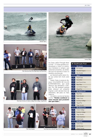 do Clube JetSki Portugal disse no final: “ O Clube agradece publicamente a todos os pilotos, seus familiares e amigos, que estiveram presentes, às entidades que nos apoiam e todos os membros da direcção por fazerem parte deste Clube que ainda tem muito para fazer!” Neste Clube é possível oferecer VOUCHERS DE AULAS EXPERIMENTAIS, que pode oferecer aos familiares e amigos. Por 25€ qualquer pessoa pode oferecer um presente original e sem dúvida cheio de adrenalina, até para os mais cepticos. Um último convite de Sandra Cunha: “Venha conhecer a nova escola que promete dar que falar…
