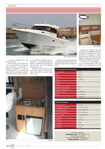 O teste foi efetuado com seis pessoas a bordo. Conhecendo já as características do Honda BF250, no que respeita sobretudo à aceleração no arranque, queríamos ver como o San Remo 900 Pro, um barco que pesa 3.900 Kg, entrava a planar e se portava na aceleração. E de fac-