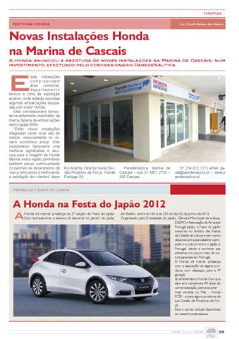 Novas Instalações Honda na Marina de Cascais A Honda anunciou a abertura de novas instalações na Marina de Cascais, num investimento, efectuado pelo concessionário ParedeNáutica.