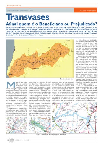 ais do que partilhar a pertença às mesmas organizações internacionais, Portugal e Espanha foram obrigados a falar entre si, a articular posições e a resolver diferendos. No entanto, a prática do diálogo não foi rapidamente adquirida, muito menos a procura de posições concertadas. A convivência entre os dois países, tanto em termos bilaterais como no seio das instituições europeias, é um processo longo e sinuoso, fértil em avanços e retrocessos. É para mim difícil chegar a uma conclusão sobre quem AFINAL É O BENEFICIADO OU O PREJUDICADO, isto porque nos últimos dois ou três anos tem havido grande polé-