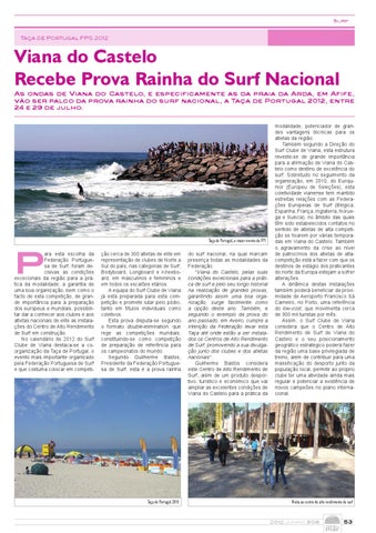 Viana do Castelo Recebe Prova Rainha do Surf Nacional As ondas de Viana do Castelo, e especificamente as da praia da Arda, em Afife, vão ser palco da prova rainha do surf nacional, a Taça de Portugal 2012, entre 24 e 29 de julho.