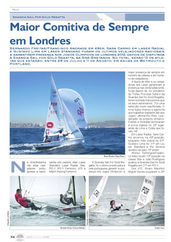 maior presença de sempre em número de classes e em número de velejadores. A dupla de 49er e os velejadores dos Laser garantiram a presença nas olimpíadas britânicas depois de, no somatório do Troféu Princesa Sofia e da Skandia Sail for Gold Regatta, terem somado mais pontos que os seus adversários: “Foi uma selecção muito equilibrada. O nível subiu imenso e agora há que trabalhar bastante até aos Jogos”, afirma Rui Reis, coordenador do projecto olímpico. Freitas e Andrade terminaram a prova inglesa no 20º lugar, atrás de Lima e Costa que foram 16º. Em Laser Radial, Sara Carmo encerrou na 40ª posição, enquanto Inês Sobral foi 61ª. Gustavo Lima foi 31º em Laser Standard e Rui Silveira quedou-se pelo 70º posto. Afonso Domingos/Frederico Melo foram 12ª posição na classe Star e João Rodrigues acabou a Skandia Sail for Gold Regatta em 21º em RS:X. Nos 470, Álvaro Marinho/ Miguel Nunes ocuparam o 26º