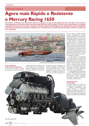 Agora mais Rápido e Resistente o Mercury Racing 1650 Em 2010, a Mercury Racing revolucionou o sector desportivo da náutica com o lançamento dos motores interiores ZDrive 1100 e 1350 (QC4v) de 4 árvores de cames e quatro válvulas por cilindro. O novo QC4v 1650 Race foi desenvolvido visando um fasquia mais elevada e garantir o primeiro lugar na meta das competições de off-shore.