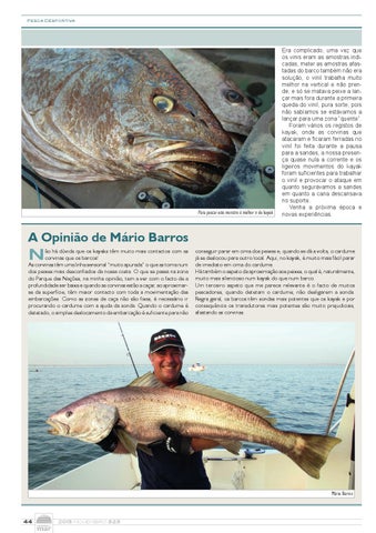 conseguir parar em cima dos peixes e, quando se dá a volta, o cardume já se deslocou para outro local. Aqui, no kayak, é muito mais fácil parar de imediato em cima do cardume. Há também o aspeto da aproximação aos peixes, o qual é, naturalmente, muito mais silencioso num kayak do que num barco. Um terceiro aspeto que me parece relevante é o facto de muitos pescadores, quando detetam o cardume, não desligarem a sonda. Regra geral, os barcos têm sondas mais potentes que os kayak e por consequência os transdutores mais potentes são muito prejudiciais, afastando as corvinas.