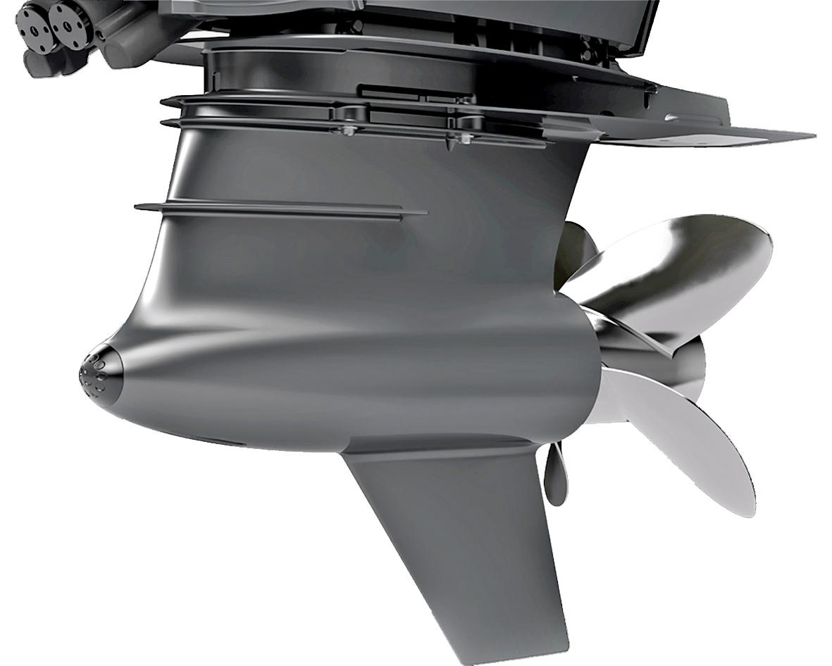 nientes para muitos dos cascos mais rápidos. A aleta de acionamento do R-Drive Sport tem forma de cunha da borda de ataque à borda de fuga e está disponível com sem inclinação ou inclinação à direita para barcos com apenas um motor. A variante R-Drive Sport está equipada com um eixo propulsor feito de liga ultrarresistente de aço inoxidável aeroespacial, semelhante ao material usado nos eixos propulsores Mercury Racing M6 e M8. Esta liga foi especificamente selecionada para suportar melhor o stress vibratório gerado pelo carregamento e descarregamento duma hélice de superfície.