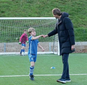 a training session before hosting a Q&A during which youngsters asked him about the standout moments of his career.