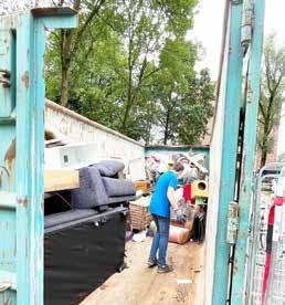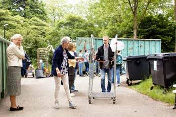 afval goed verwerkt kan worden. Martin dirigeerde op de dag zelf de bewoners perfect om het afval te scheiden. Wat kan er nog hergebruikt worden? Naar het hoekje voor de kringloopwinkel. Papier en karton? In de daarvoor bestemde container. Een apparaat waar nog een stekker aanzit? In de container voor elektrische artikelen. Grofvuil? Zet het daar maar neer. Het liep lekker door.