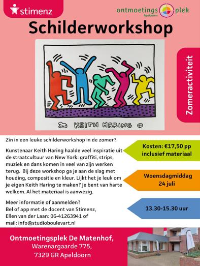 Zin in een leuke schilderworkshop in de zomer? Lijkt het je leuk om je eigen Keith Haring te maken? Je bent van harte welkom op woensdagmiddag 24 juli van 13.30-15.30 uur.