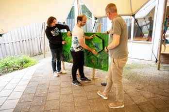 Iedereen is van harte welkom om een rondgang te maken langs de werken. Ze hangen niet alleen bij de ingangen en in De Huiskamer, maar ook in de vergaderzalen en in de gang naar de jeugdruimtes.