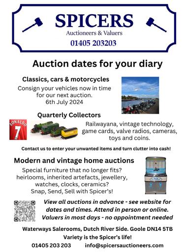 WE HOLD REGULAR AUCTIONS THROUGHOUT THE YEAR; EASY ACCESS TO BOTH THE M1 AND M25; WORLDWIDE CUSTOMER DATABASE; FREE NO OBLIGATION VALUATIONS FANTASTIC PRICES
