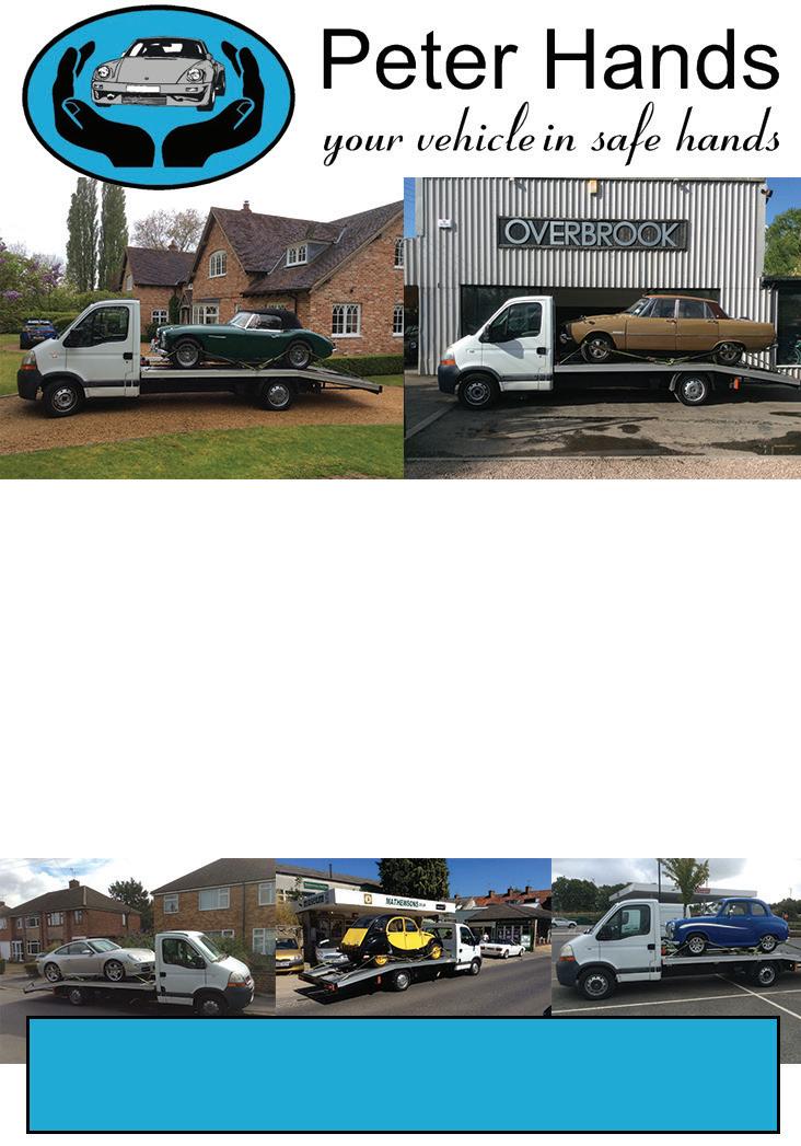 10 PREMIER BANNER SECTION VALETING TRIUMPH • Forged pistons & conrods • High torque starter motors • Alternators & dynators • Competition brake pad & brake shoes • Exclusive race engine components for MGB & TR4 Order online at: www.cambridgemotorsport.com Tel: 01462 684300 l Email: sales@cambridgemotorspor t.com www.trgb.co.uk - T: 01487 842168 Unit 1, Sycamore Industrial Estate, Long Drove, Somersham, Huntingdon, Cambridgeshire, PE28 3HJ We have a busy workshop where we can carry out any work, from a simple service to a concours quality restoration that is fully warrantied. We also have cars for sale, fully restored to rolling project. We can also buy or sell your classic on commission. The only certified IDA members in Hull. We are also Gtechniq accredited detailers offering the best level of ceramic coatings lasting upto 9 years with unbeatable gloss and protection. 01482 298558 • ardetailinghull.co.uk +44 1923 519 682 STORAGE www.premiervehiclestorage.co.uk - 07776 196 796 Premier Vehicle Storage is the South West’s leading professional vehicle storage company having been established since 2005. TRACTOR, TRUCKS, TRAILERS & STEAM ENGINES Web: www.welhamgroup.co.uk - Tel: 0116 276 6831 Hawarden Avenue, Coleman Road, Leicestershire, LE5 4NL Fuel injection specialist. Est. 1964. Simms, CAV, Bosch, Stanadyne, Recon & new injectors. Pumps & lift pumps. Specialising in Classic + Veteran. Diesel fuel injection specialist. Est 1964. Simms, CAV, Bosch, Stanadyne, Recon & new injectors. Pumps & lift pumps. Classic Tractor Specialists. TRANSPORTATION Because we care as much as you do A totally unique car transportation company offering each and every customer the platinum service that both they and their car deserve... without compromise! Call: 0800 9788 132 www.a2bmarquemovers.co.uk www.peterhands.co.uk - 07493 835 293 Mob: 07778 541 654 - www.tlstransport.co.uk Over 15 years experience in transporting vehicles MadMan Trim does automotive interior trim. • Seats • Door cards • Carpets • Dashpads • Headliners • Hoods • Tonneau covers • Steering wheel covers • Gaiters www.madmantrim.com Tel: 01206 803108 - info@madmantrim.com TRIM / UPHOLSTERY / SPECIALISTS PHOENIX AUTO TRIM RESURRECTING CLASSIC INTERIORS TO THEIR FORMER GLORY Call today on: 07801 546 235 • www.phoenixautotrim.co.uk Segal Motor Trimmings Ltd has been supplying the motor trade with all its requirements for over 75 years, from manufacturers to classic car enthusiasts carrying out their own restorations. www.segalmotortrimmings.net - 0161 834 7994 With over 10 years experience SPAU Trimming provides high quality interiors for classic and modern automobiles. www.spau.co.uk - 020 8450 6301 - office@spau.co.uk PROFESSIONAL VEHICLE TRANSPORTATION IN LANCASHIRE & ACROSS THE UK www.lancashiremotormovers.co.uk - T : 07732 819018 TRIM REPAIRS Your local interior repair specialist that comes to you! www.intrimrepair.co.uk - 07919 176149 UPHOLSTERERS Professional auto upholstery in Darlington We understand the importance of high quality, bespoke upholstery. That is why we only work with the most premium OEM materials ensuring an exact colour match to achieve an outstanding finish for your upholstery. www.moortrim.uk - 07503 145614 SHIPPING Auto Shippers UK are certified car shipping professionals - licensed and insured to deliver the best service available directly from the UK. www.autoshippers.co.uk - Call Free: 0800 389 0784 Worldwide Car Shipping Every year, RJJ ship thousands of cars (both modern & classic), motor bikes, motor homes and other vehicles around the world. 01394 673466 • sales@rjjfreight.co.uk www.rjj-car-shipping.com Wavecrest Limited specialises in the movement of all types of vehicles including classic cars, limousines, 4 x 4’s, vans, trucks, motorhomes and motorcycles. www.wavecrest.co.uk - T: 01474 331146 STEERING & SUSPENSION - Hydragas Suspension Unit Recharging - Hydrolastic Suspension Unit Rehosing www.hahsltd.co.uk - 01952 613184 / 07506 563081