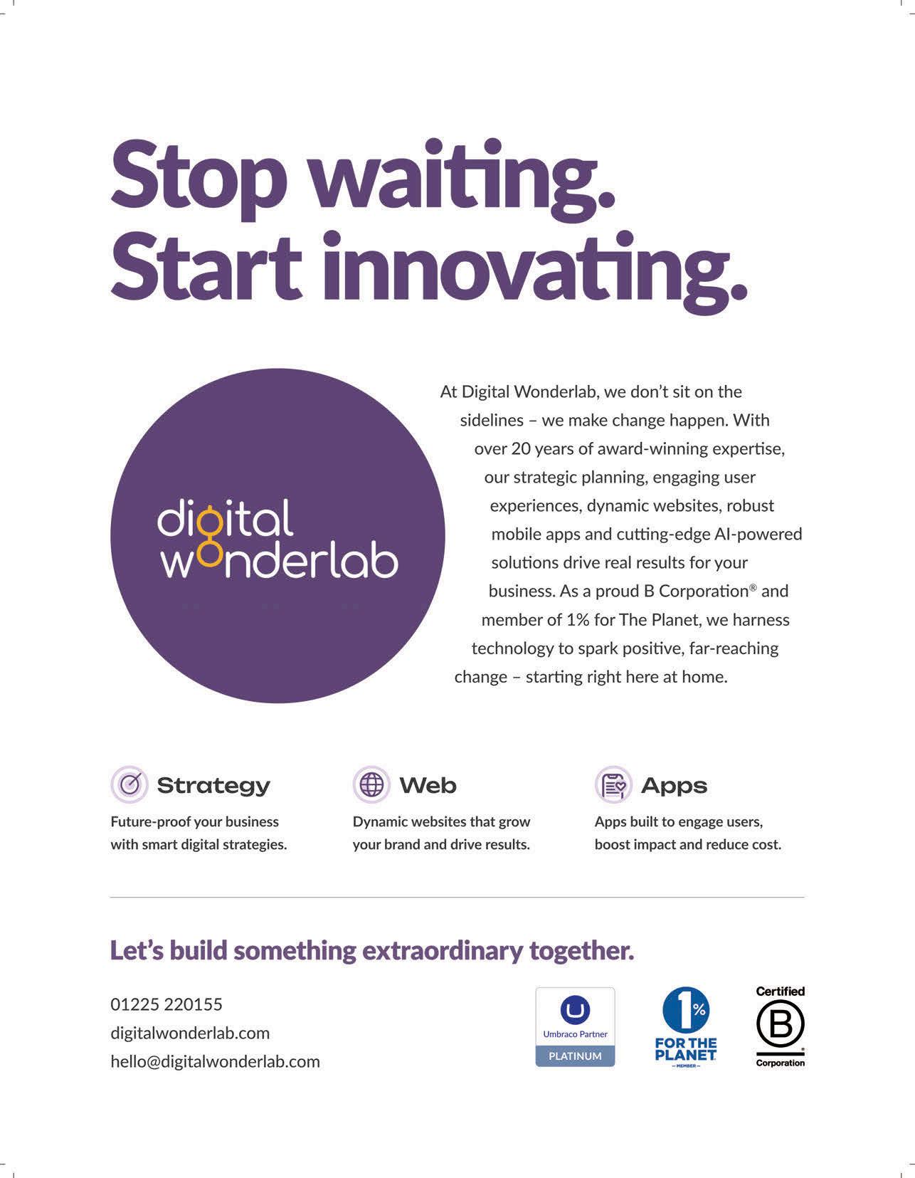 Editor Sarah Moolla sarah.moolla@mediaclash.co.uk Managing editor Deri Robinsderi.robins@mediaclash.co.uk Senior art editor Andrew Richmond Cover design Trevor Gilham Contributors Victoria Bond, Nic Bottomley, Marianne Cantelo, Elsie Chadwick, David Flatman, Shelley Hughes, Paul Marland, and John Mather Commercial director Pat White pat. white@mediaclash.co.uk Business development manager Annabel North annabel.north@mediaclash.co.uk Business development manager Dan Nichols dan.nichols@mediaclash. co.uk Business development executive Ruby Coburn ruby.coburn@mediaclash.co.uk Marketing manager and events executive Olivia Amey Production and distribution manager Kirstie Howe kirstie.howe@mediaclash.co.uk Production designer Matt Gynn matt.gynn@mediaclash.co.uk Production designer Gemma Bourne Chief executive Jane Ingham jane.ingham@mediaclash.co.uk Chief executive Greg Ingham greg.ingham@mediaclash.co.uk Bath Life MediaClash, Media House, 1 Widcombe Parade, Bath, BA2 4JT. tel: 01225 475800; www.mediaclash.co.uk. Instagram @TheMediaClash ©All rights reserved. May not be reproduced without written permission of MediaClash. We’re a Bath-based publisher, creative agency and event organiser Magazines Our portfolio of regional magazines celebrates the best of local living: Bath and Bristol. Agency From the design and build of websites to digital marketing and creating company magazines, we can help. Events We create, market, promote and operate a wide variety of events both for MediaClash and our clients Contact: info@mediaclash.co.uk