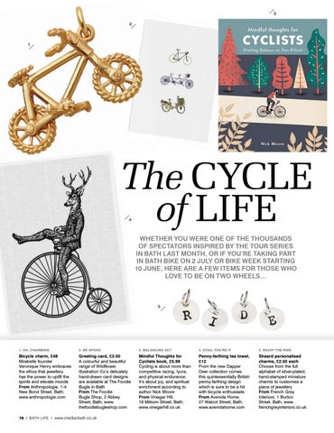 WHETHER YOU WERE ONE OF THE THOUSANDS OF SPECTATORS INSPIRED BY THE TOUR SERIES IN BATH LAST MONTH, OR IF YOU’RE TAKING PART IN BATH BIKE ON 2 JULY OR BIKE WEEK STARTING 10 JUNE, HERE ARE A FEW ITEMS FOR THOSE WHO LOVE TO BE ON TWO WHEELS…