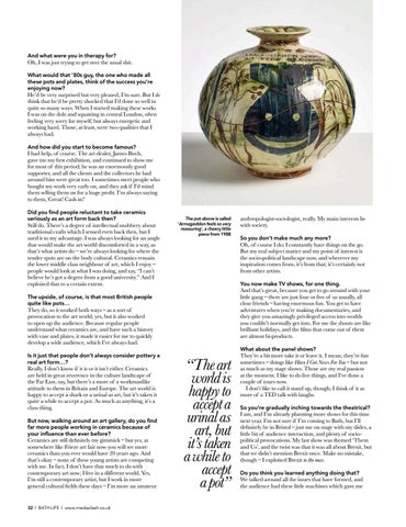 “The art world is happy to accept a urinal as art, but it’s taken a while to accept a pot”