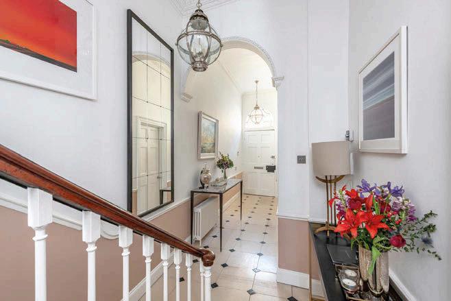 Henrietta Street is built on an almost crescent-like curve, giving the six oors here a subtle lozenge-like footprint that adds uirky interest to every aspect of the house. Entering on the ground oor, you encounter two reception rooms – currently used as a dining room and a library, but the choice is yours – plus a bedroom with en suite, but then you have a di cult choice up or down? pstairs you’ll find a first oor of two more reception rooms – a drawing room and a withdrawing room (a more private version of the same) plus a laundry room and balcony, then an entire second oor dedicated to the principle bedroom and bathroom. eep going, and up another ight of stairs there are two more bedrooms (one with en suite) and a bathroom. r, if you were to go down, you’d find more bedrooms (with en suites) on the lower ground oor, plus a sitting room, a courtyard and a self-contained ground oor apartment. (This is accessed either internally on the lower ground oor, or via steps from the street, so could be incorporated into the greater the way touches with