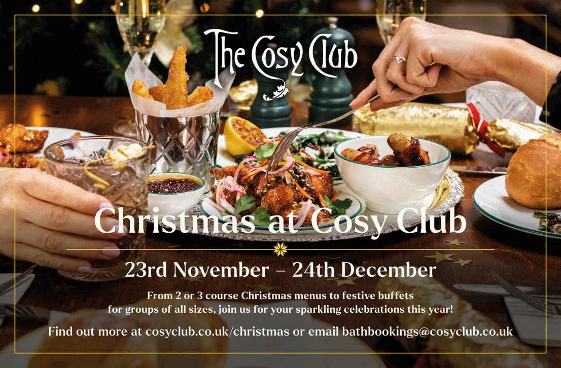 In this bumper issue, we also have a fascinating interview with Matthew Cook, an artist who actually paints on the frontline of war zones (page 66); on page 70 we meet some of the creatives who belong to Bath’s biggest art community, the Bath Artists’ Studios, which is celebrating 25 years; there’s our regular, and always beautiful, fashion pages which in this issue, on page 92, pays homage to denim; and our Bath Lives (page 122) is an American musician who loves Bath so much, he performs under the name of Larkhall. Elsewhere Flats is talking Christmas party plans on page 13, and as if by magic we can help out with that over on page 86 with our round-up of some great local venues to help us celebrate the Yuletide.