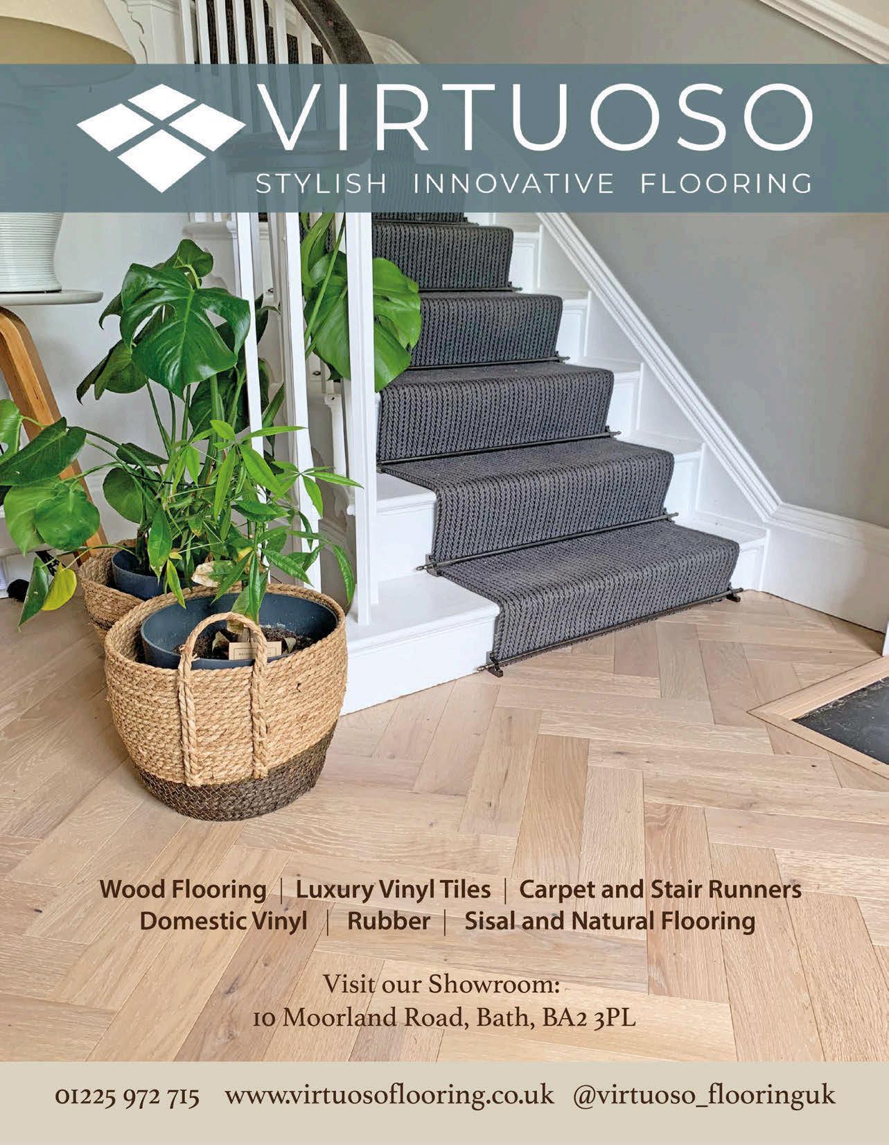 ering stylish, innovative ooring solutions to meet the needs of the savvy Bath homeowner. Virtuoso employ the largest team of experienced fitters in Bath. Their dedicated team are ready to turn your dream oor into a reality. Call now for a free consultation or visit their new show room on Moorland Road. To en ire emai in o@virt osofloorin o or a 01225 972715; www.virtuosoflooring.co.uk