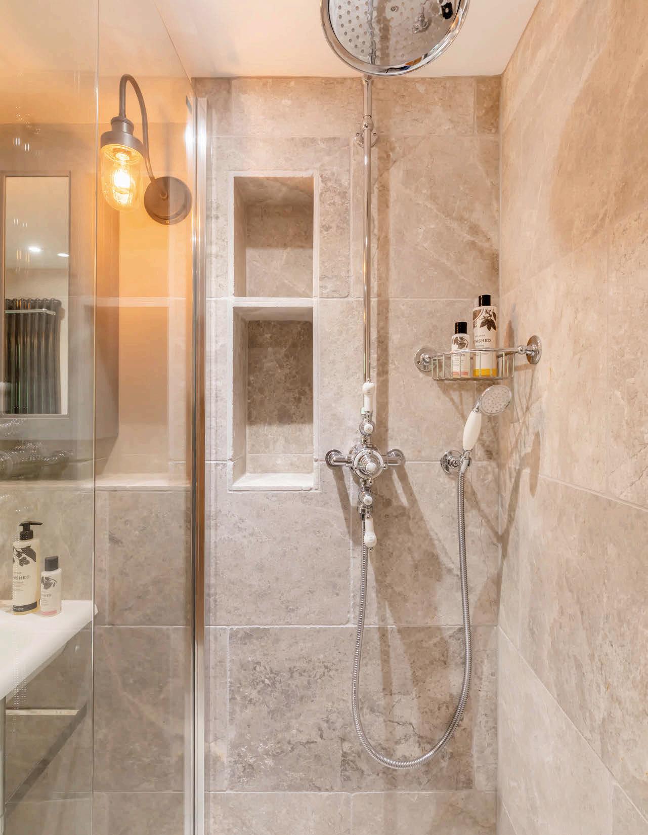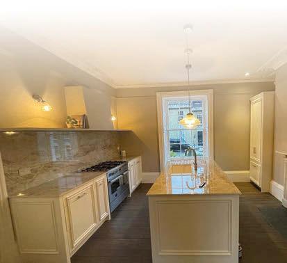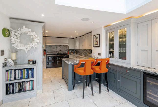 But what’s even better is the stylish, striking, yet sympathetic approach to interior design throughout, all of immaculate quality and bold enough to make the copious period features sing. There’s tiled ooring and an ornate ceiling arch in the airy hallway; shuttered windows and period fireplaces galore; and versatile accommodation throughout, with wedding doors on both the ground and first oors allowing you to present either reception space as one large room or two smaller ones. Floor-to-ceiling wardrobes, marble tiling, twin hand basins and a freestanding bath all make the principle bedroom oor one you’ll be slow to vacate each morning, while even the lower ground oor, with its vast family-friendly cinema or gaming room, is surprisingly light-filled, thanks to a lantern skylight and bi-fold glass doors to the garden from the kitchen/ dining