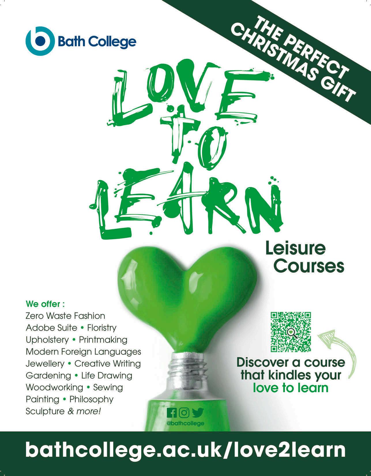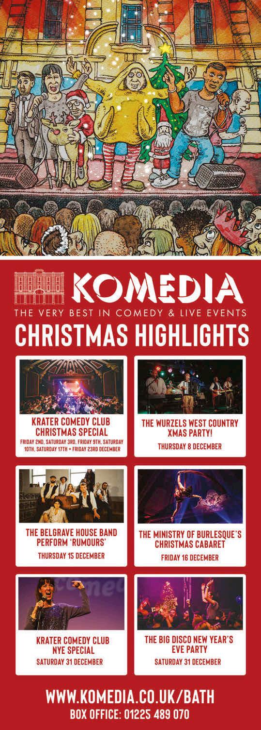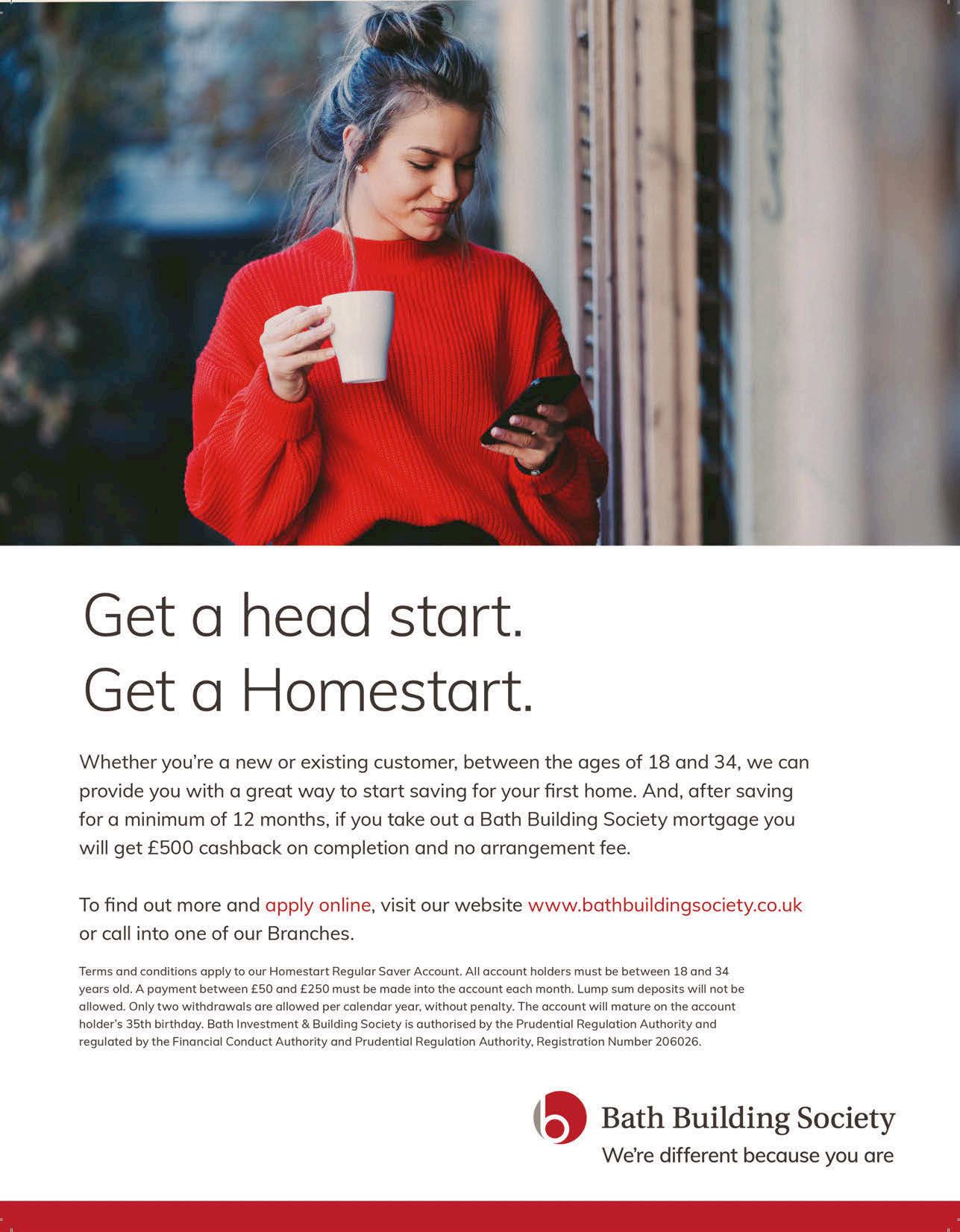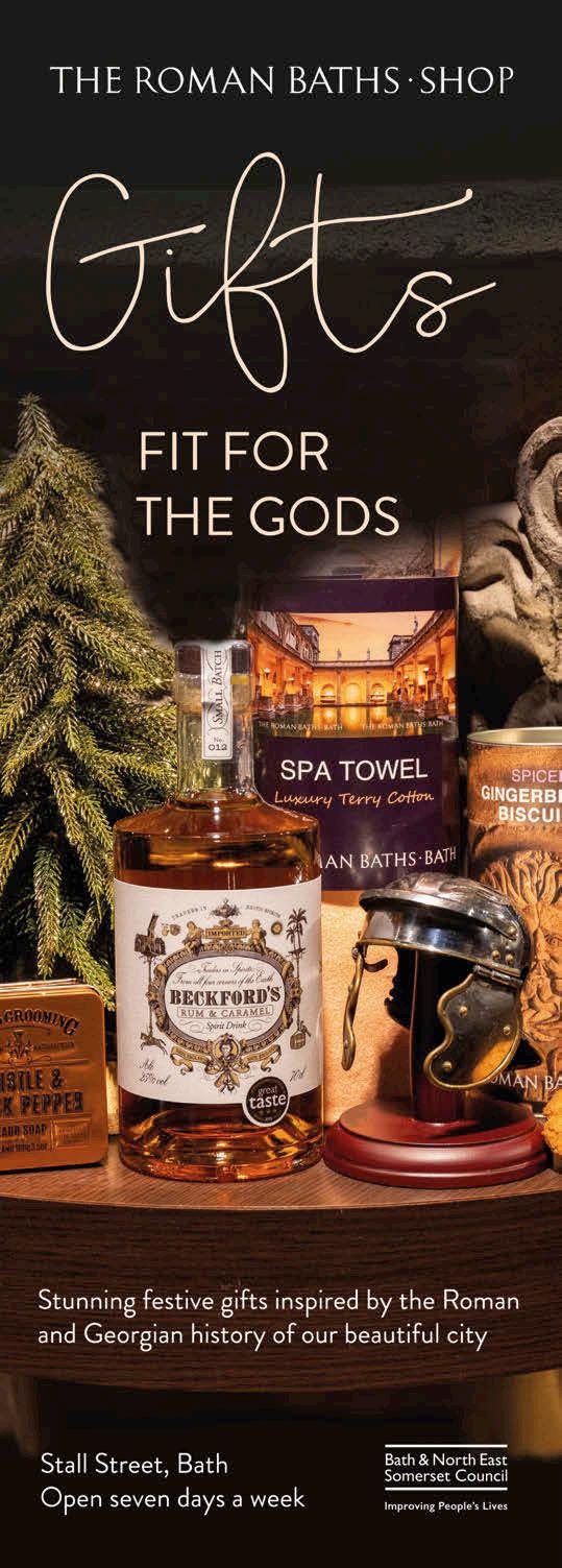 Cover design Trevor Gilham Contributors Victoria Bond, Nic Bottomley, Marianne Cantelo, David Flatman, Rachel Ifans, Emma Ingledew, Derryn Vranch and Matilda Walton Group commercial manager Pat White pat.white@mediaclash.co.uk Business development manager Annabel North annabel.north@mediaclash.co.uk Business development manager Dan Nichols dan.nichols@mediaclash.co.uk Production and distribution manager Sarah Kingston sarah.kingston@ mediaclash.co.uk Deputy production manager Kirstie Howe kirstie.howe@mediaclash.co.uk Production designer Matt Gynn matt.gynn@mediaclash.co.uk / Gemma Bourne gemma. bourne@mediaclash.co.uk Chief executive Jane Ingham jane.ingham@mediaclash.co.uk Chief executive Greg Ingham greg.ingham@mediaclash.co.uk Bath Life MediaClash, Carriage Court, 22 Circus Mews, Bath, BA1 2PW. tel: 01225 475800; www.mediaclash.co.uk Instagram @TheMediaClash ©All rights reserved. May not be reproduced without written permission of MediaClash. We’re a Bath-based publisher, creative agency and event organiser