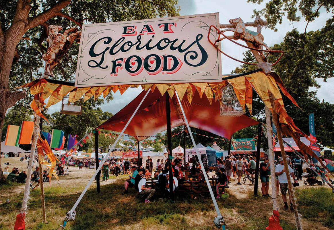 This issue contains features about two of my favourite things in the whole wide world – books (page 14) and festivals (page 26). And don’t make me choose a favourite. I may be loud and gobby now, but as a child I was a quiet nerd who actively enjoyed spending rainy days in hushed libraries. s confidence re alon ith a e then discovered the o of usic in fields M ver first festival as W M in near levedon hich I day tripped to, and shortly after that, thinking myself a pro, I headed to a festival called Glastonbury. We caught the Badgerline bus over to the site. No ticket, no panic, no queues. In my retellin all cool and confident and do n the front clambering on my mate’s shoulders and loving life. But if I’m honest, I remember being slightly terrified as cars eaved a on st the tents so eone as definitel oin to drive over e in slee trying hard not to cry when I saw/smelt the loos, and spending a lot of time hanging around the back in awe of the chaotic spectacle, and quietly wondering if d have een etter o oin to the li rar Nowadays festivals have evolved into slick, safe, and star-studded spaces, and the choice – wowzers – such a choice! From my dream mash-up – festivals with books, such as our very own Bath Festival celebrated on this issue’s cover – to those with food, wellness, history, and even opera at their hearts. I’m sure if look ver hard a even find a festival with a library. Utter bliss!