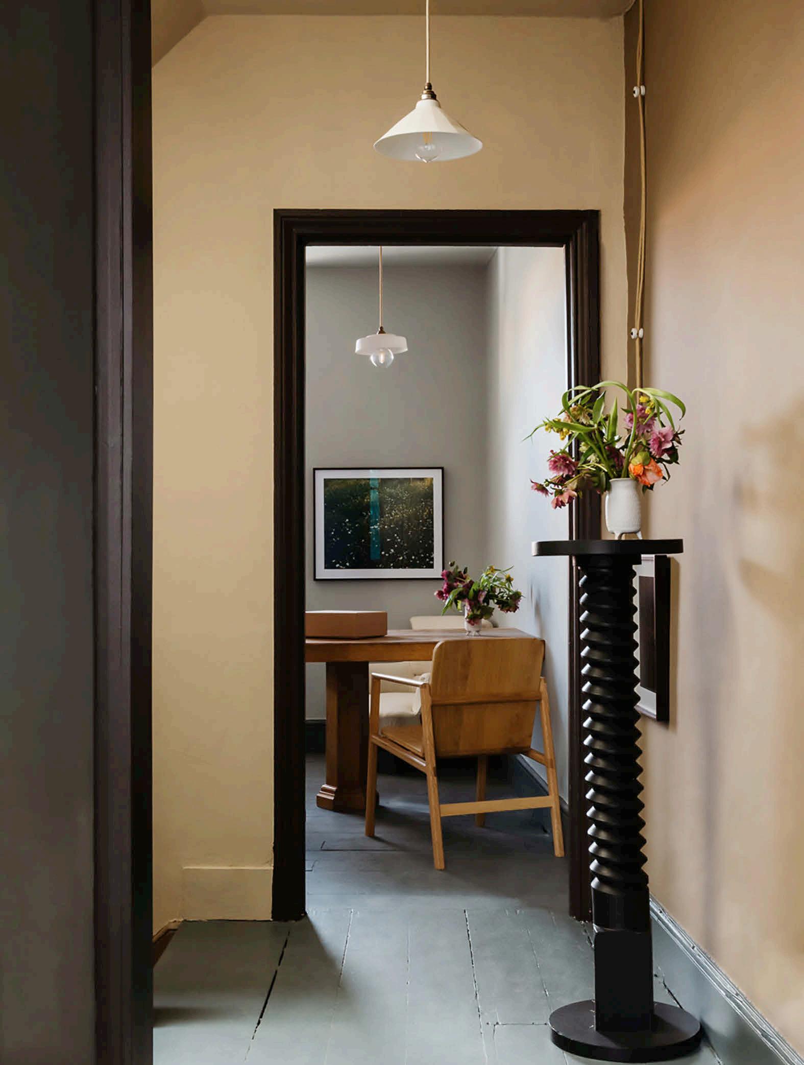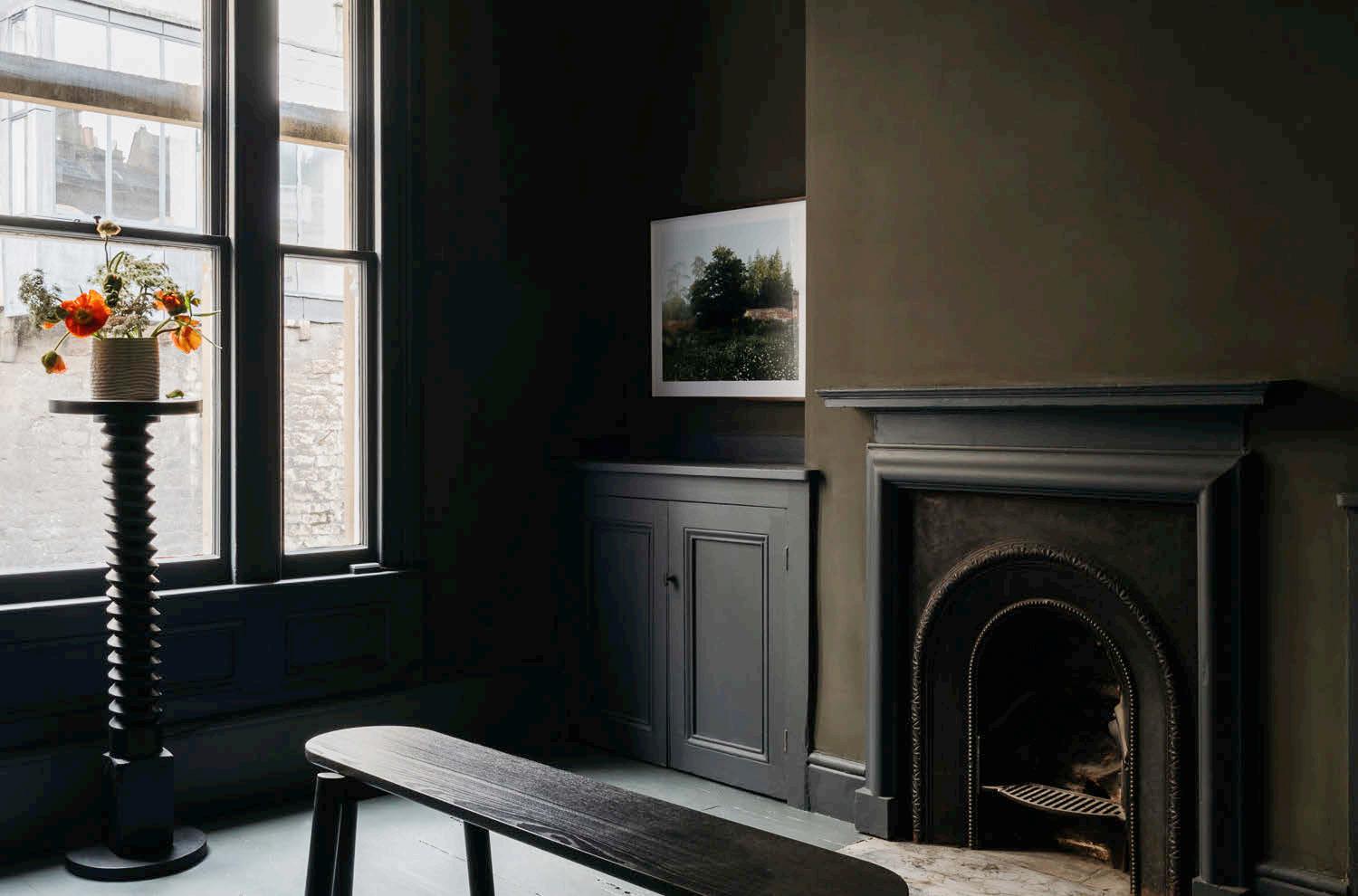 coloured in ith our nine ne colours ur first oor front aller is ver dark usin Under Wood a dark reen on the alls an un ainted li e laster ceilin and Aged Black indo s hereas our first oor front aller is li ht usin Tamaki on alls and ceilin and Zumai on the indo s and a secret Blockprint Yellow cu oard The roo s are tied to ether ith Hummingbird dark lue oors The staircase t ists and chan es fro dark to li ht and our sho front is in our ne soft ink Beginnings anted to sho case di erent a s of usin colours ou can have a lilac radiator if ou ant to