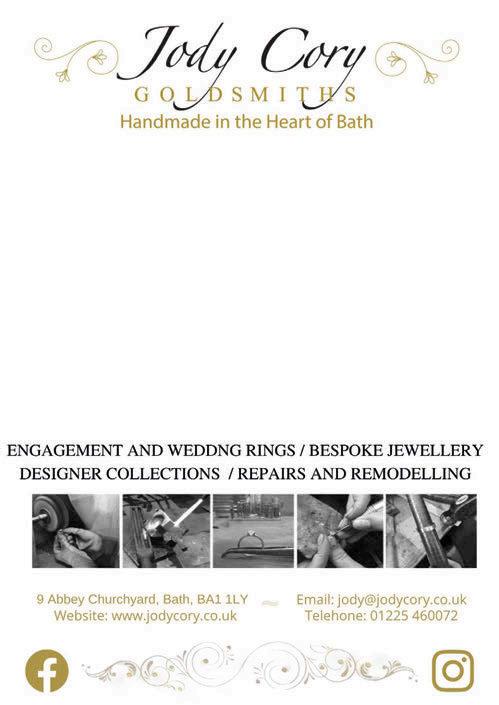 Chief executive Jane Ingham jane.ingham@mediaclash. co.uk Chief executive Greg Ingham greg.ingham@mediaclash.co.uk Bath Life MediaClash, Carriage Court, 22 Circus Mews, Bath, BA1 2PW. tel: 01225 475800; www.mediaclash.co.uk Instagram @TheMediaClash ©All rights reserved. May not be reproduced without written permission of MediaClash.