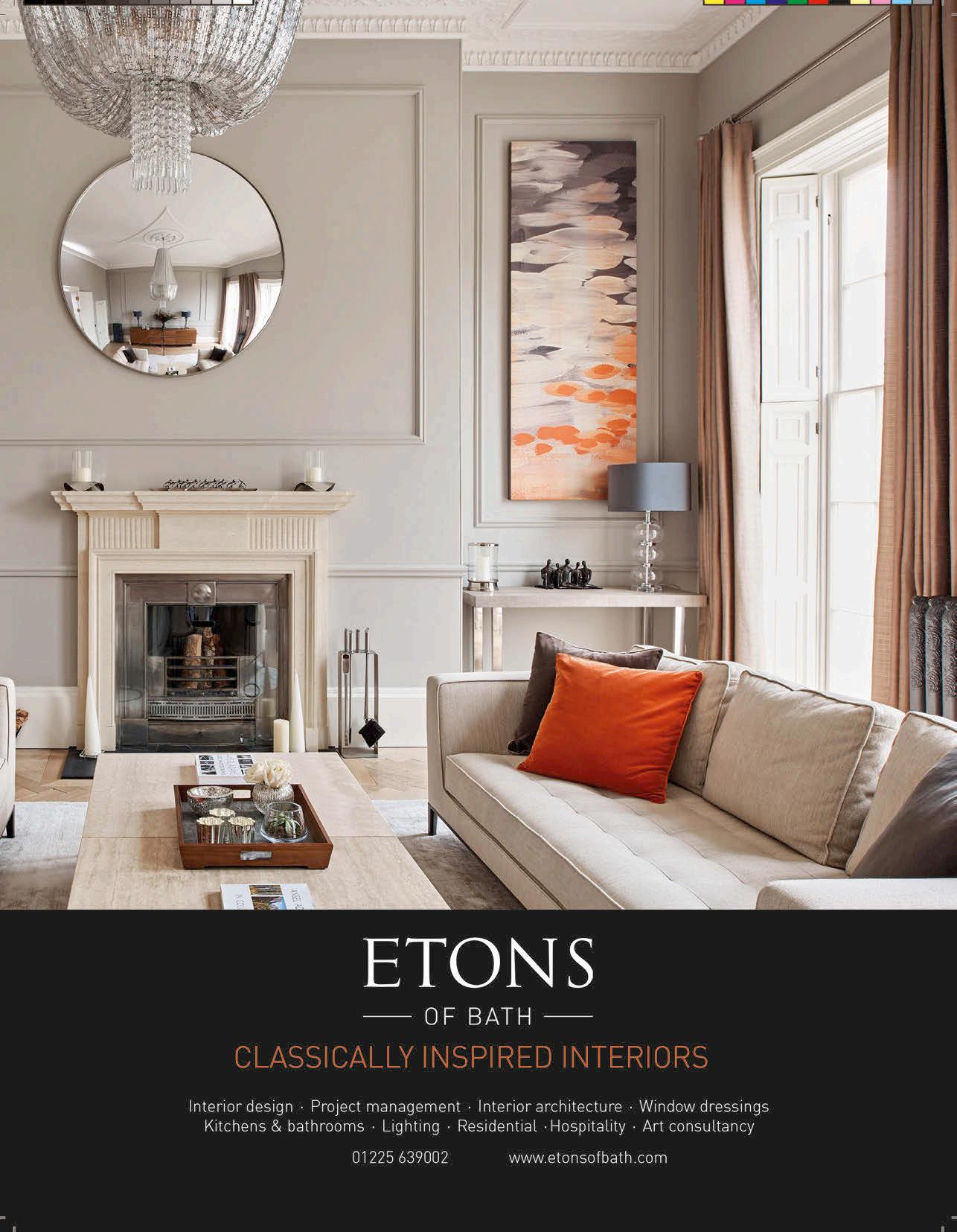 Clair Strong Interior Design is a boutique, creative company based in Bath, providing a wide range of services for both residential and commercial clients. Her portfolio of projects includes the design, project coordination and sourcing for some of Bath’s most beautiful residences, as ell as hotels s orts clu s o ces and other co ercial venues. Contact Clair on 07855 797311 or 01225 690019; www.clairstrong.co.uk