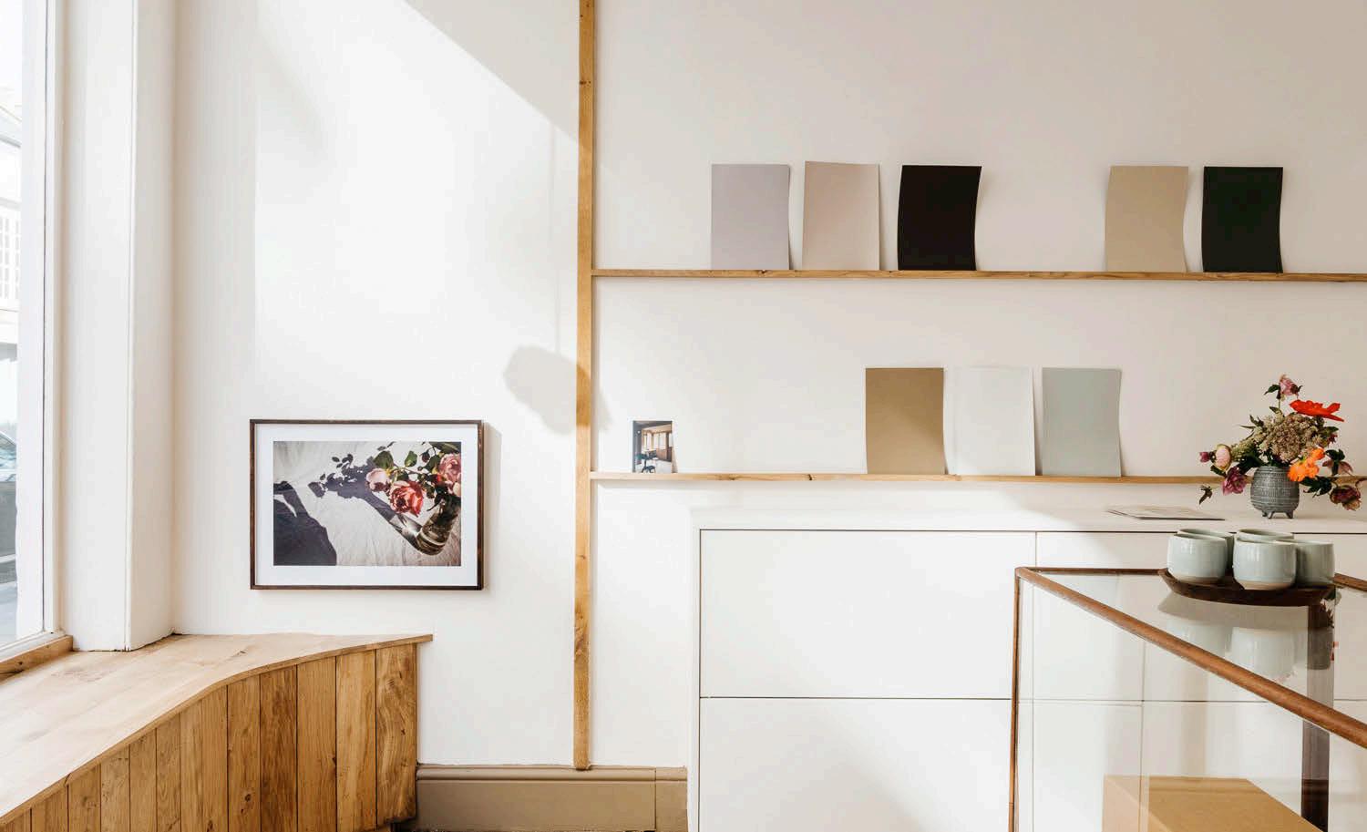 think the first roo round oor sho front is ver lovel We rec cled old oak oorin to create a eautiful indo seat and dis la shelvin for our hand ainted colour cards The li ht co in throu h the indo s akes it a ver elco in lace to e