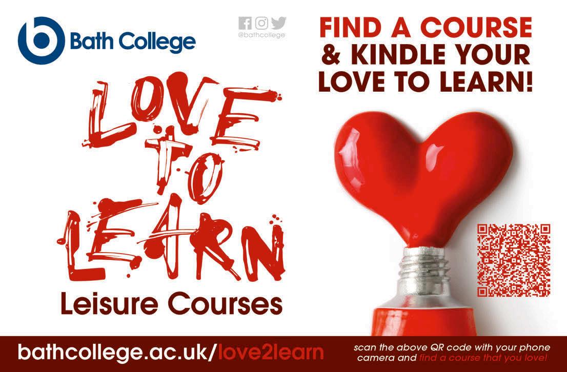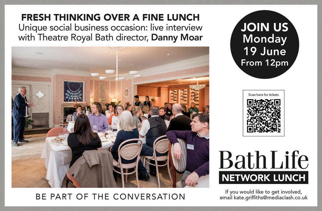 Senior art editor Andrew Richmond Cover design Trevor Gilham Contributors Matthew Bielby, Nic Bottomley, Marianne Cantelo, David Flatman, Rachel Ifans, and Lydia Tewkesbury Group commercial manager Pat White pat.white@mediaclash.co.uk Business development manager Annabel North annabel.north@mediaclash.co.uk Business development manager Dan Nichols dan.nichols@mediaclash.co.uk Production and distribution manager Sarah Kingston sarah.kingston@mediaclash.co.uk Deputy production manager Kirstie Howe kirstie.howe@mediaclash.co.uk Production designer Matt Gynn matt.gynn@ mediaclash.co.uk / Gemma Bourne gemma.bourne@mediaclash.co.uk Chief executive Jane Ingham jane.ingham@mediaclash.co.uk Chief executive Greg Ingham greg.ingham@mediaclash.co.uk Bath Life MediaClash, Carriage Court, 22 Circus Mews, Bath, BA1 2PW. tel: 01225 475800; www. mediaclash.co.uk Instagram @TheMediaClash ©All rights reserved. May not be reproduced without written permission of MediaClash.